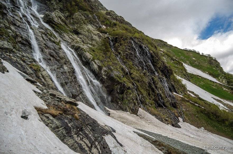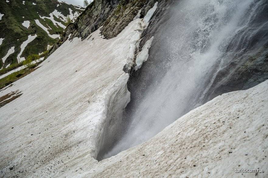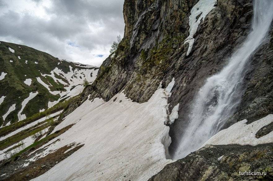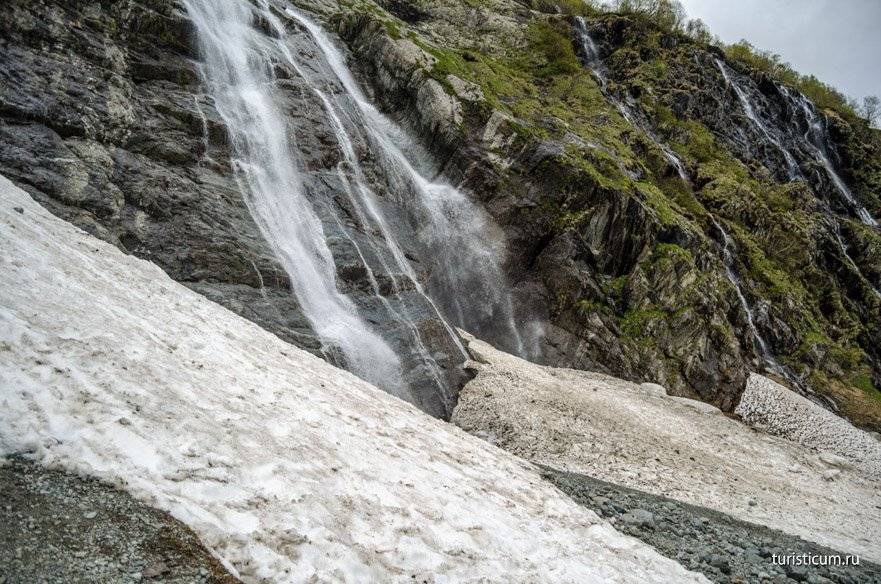 Чтобы не заблудиться, в качестве ориентира используйте посёлок Чвижепсе, миновав который через 3-4 км и будет упомянутый съезд. После небольшой прогулки по горной тропе вы очутитесь возле источника, вода которого ниспадает вниз с 13-метровой высоты, и, разбиваясь, устремляется к реке Мзымта.