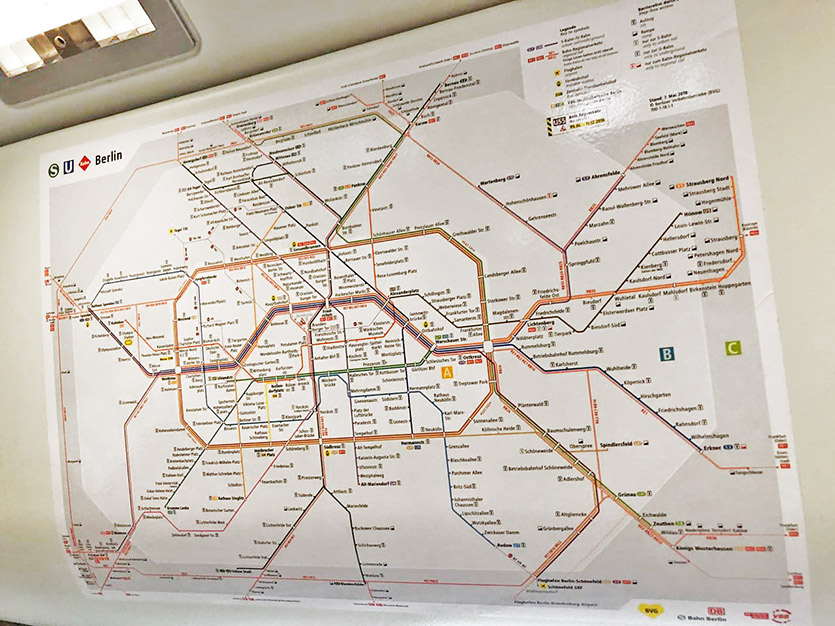 Последнее. Схема метро Берлина настолько недружелюбная, что туристу хочется немедленно выйти и заказать такси. Как будто спагетти вывалили на стол и раскидали ложкой.