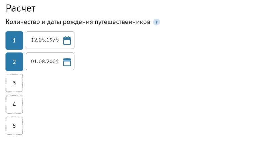 - Указываете количество участников путешествия и даты их рождения.