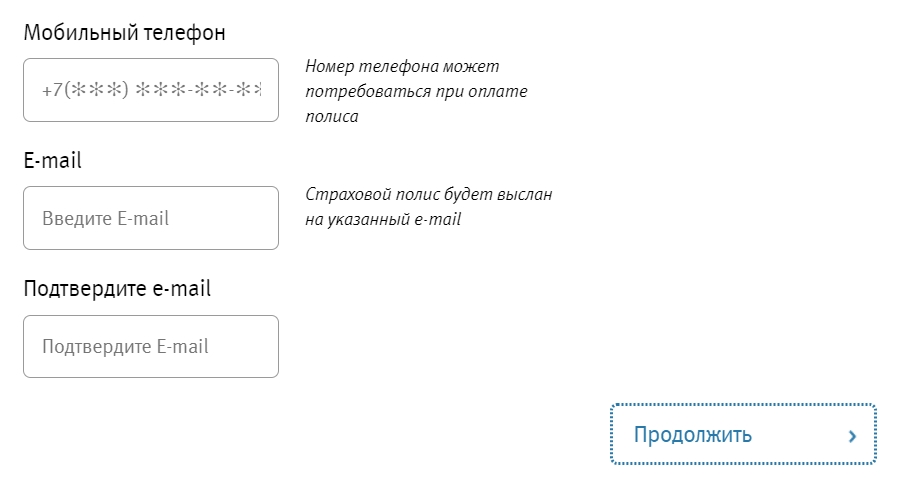 - отправление электронного полиса на e-mail.