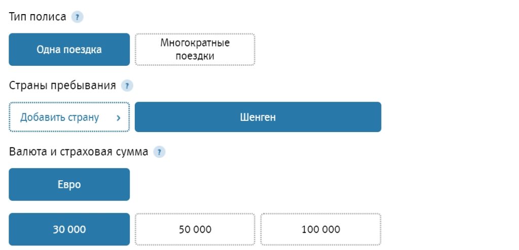 - тип полиса: на одну поездку или несколько;