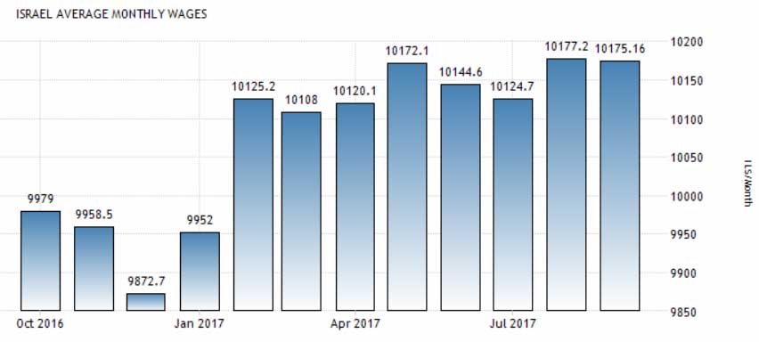 Средний уровень заработной платы в Тель-Авиве в 2018- 2019 году:
