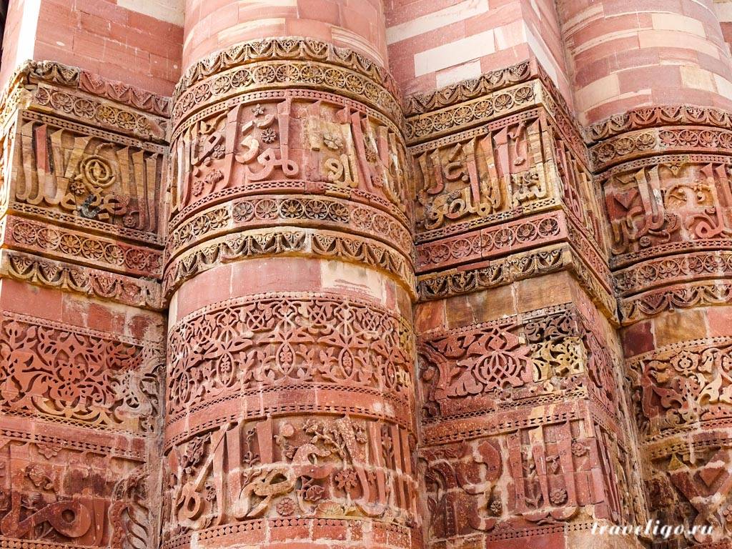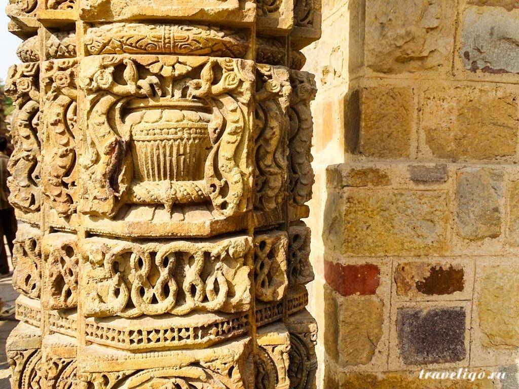 Надписи на персидском языке прямо указывают на то, что стройматериал так же брался с руин разрушенных индуистских храмов.