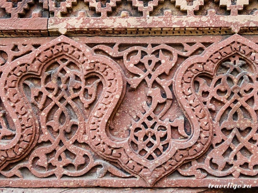 Несмотря на внушительные размеры, минарет выглядит легкой и изящной башней благодаря тонкому рисунку, выложенному красно-желтым песчаником.