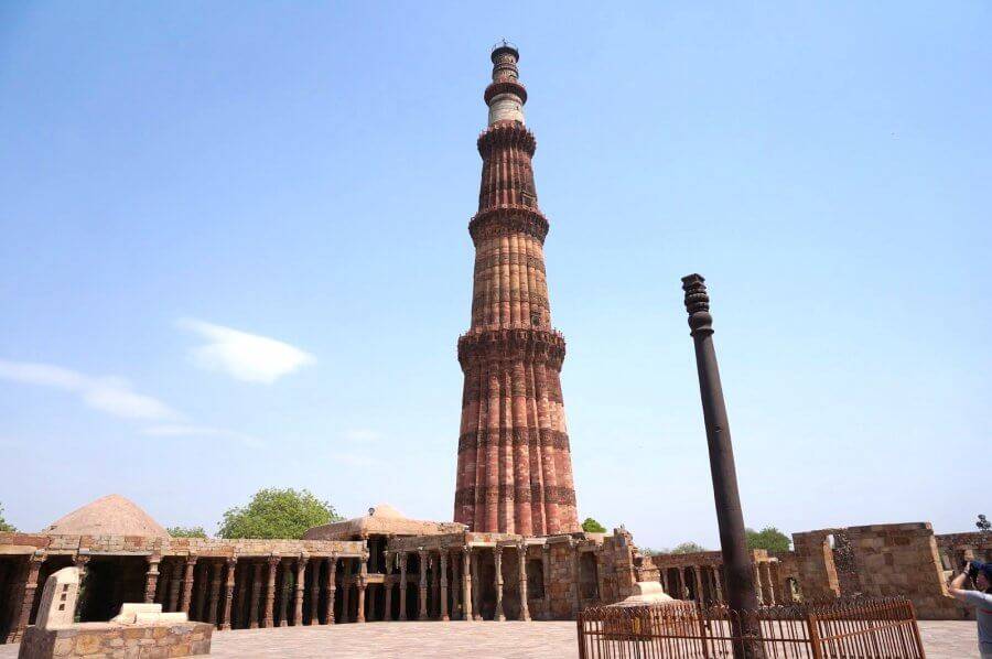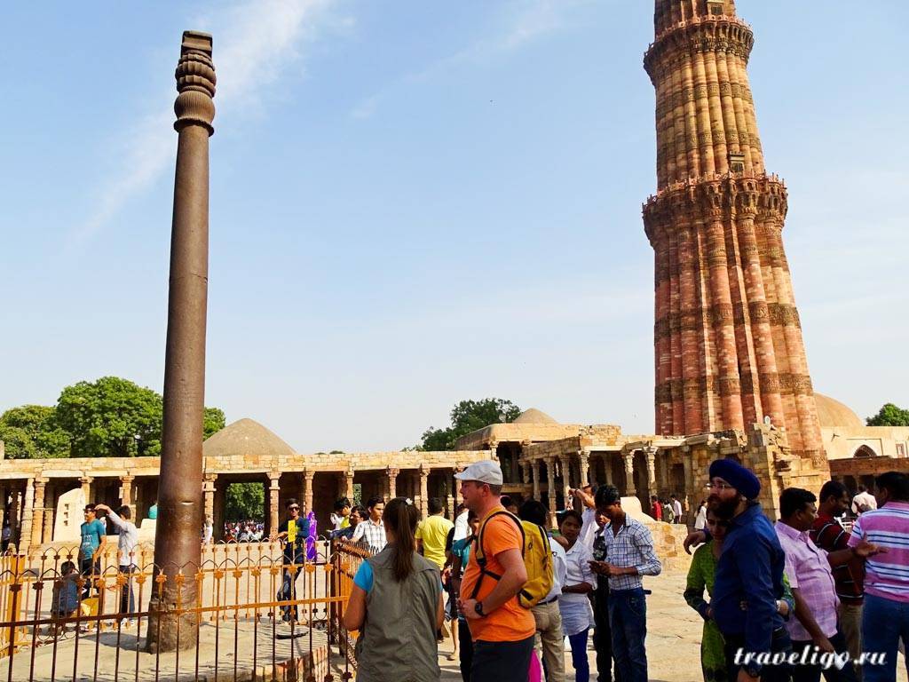 Рядом с Кутб-Минар стоит ещё одна популярная достопримечательность комплекса. Одна из гипотез появления этой колонны связана с метеоритом, упавшим на землю, якобы из него было сделано 3 колонны, две упали и сейчас они в земле, третью несколько раз устанавливали после падения. Другая гипотеза связана с древнейшей цивилизацией, предполагается, что процесс изготовления связан с наращиванием решетки структуры железа. Сейчас так выращивают некоторые кристаллы небольших размеров. Этим и объясняют ученые ее лечебные свойства.