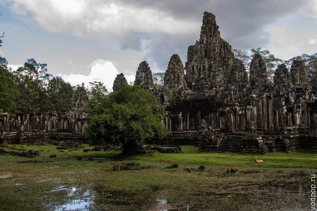 Интересный факт: место для строительства Ангкор Том было выбрано не случайно. Там, где стояли храмы Пимеанакас и Бапуон, построенные 100-150 лет назад и оставались руины других древних построек, Джаяварман приказал строить новый город. И центром он обозначил именно Байон – возведенный на более древней платформе самый необычный храм-гора Ангкора.