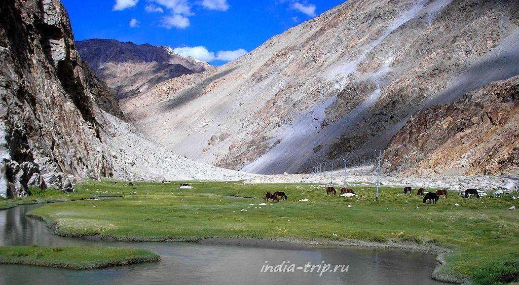 Зеленая трава в Ладакхе – редкость, встречается только по берегам водоемов