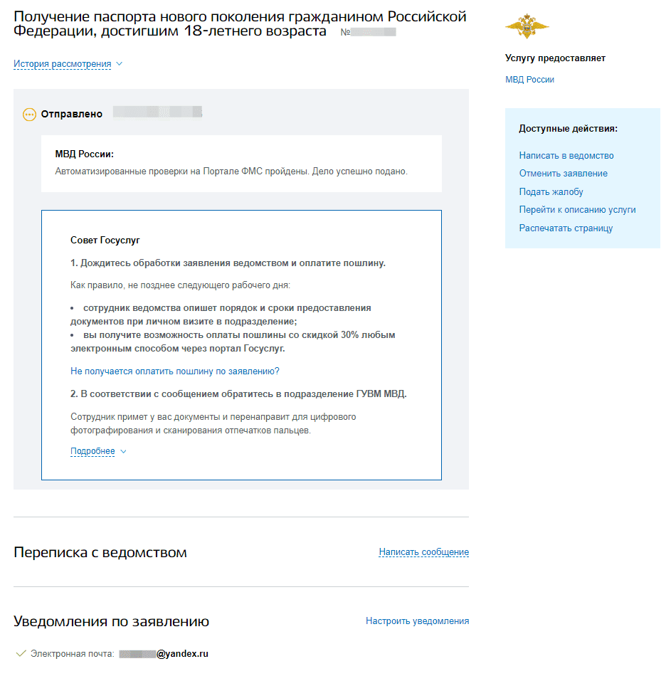 Шаг 3. Ждем ответ на заявление