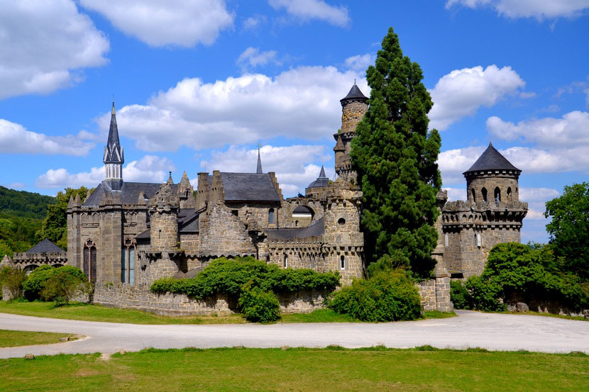 Этот замок еще называют сказочным замком и типичным образцом жилья германского рыцаря. И действительно: постройка находится на живописной поляне леса, вокруг которого только горные образования рельефа. Такое «глухое» месторасположение способствовало тому, что замок никогда никем не захватывался. Он уцелел даже во времена Французской революции и двух самых жестких в тех местах войн XVII и XVIII веков. Поэтому здание полностью сохранилось до наших времен.