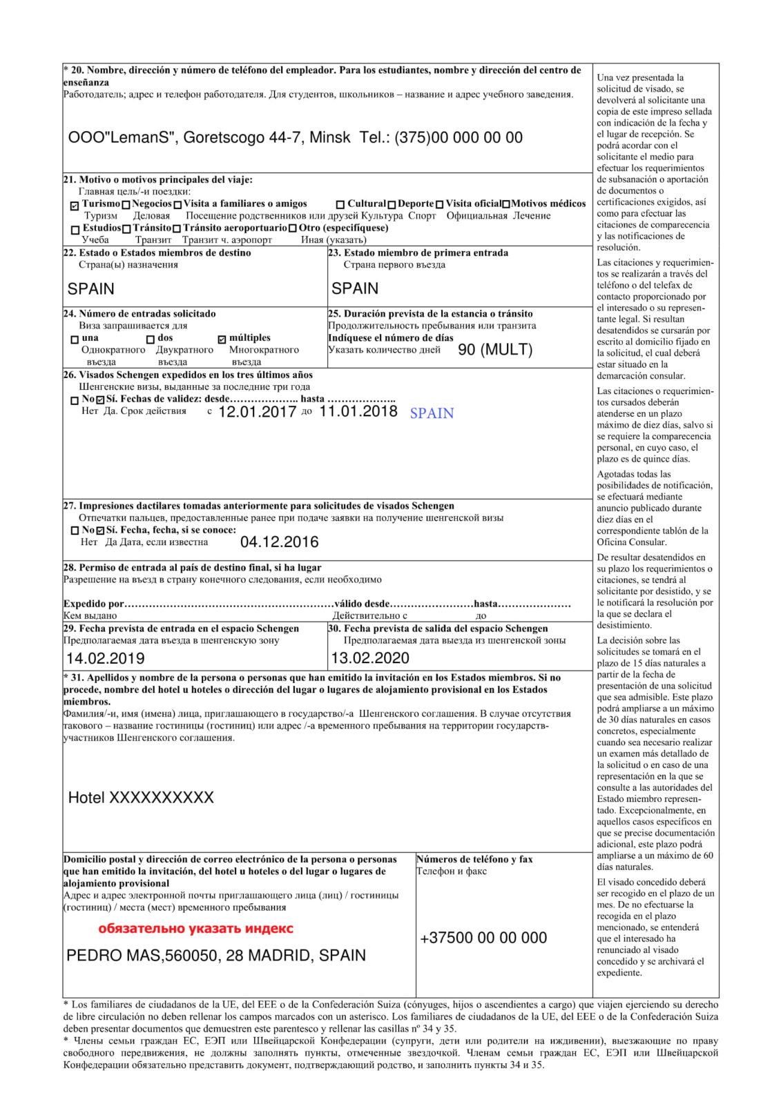31-я графа содержит информацию о человеке, выславшем приглашение для иностранного гражданина в Шенгенскую зону (например, родственнике). Если такового нет, требуется вписать информацию об отеле.