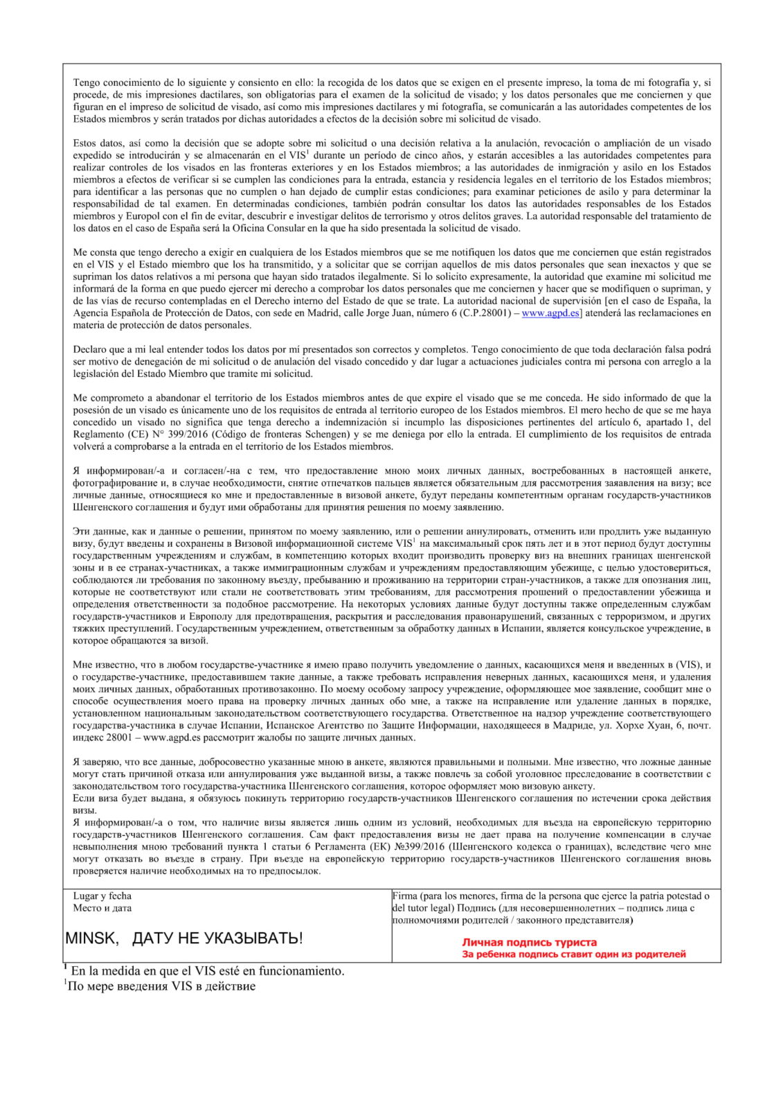 - согласен на использование его личных данных в рамках Единой визовой системы.