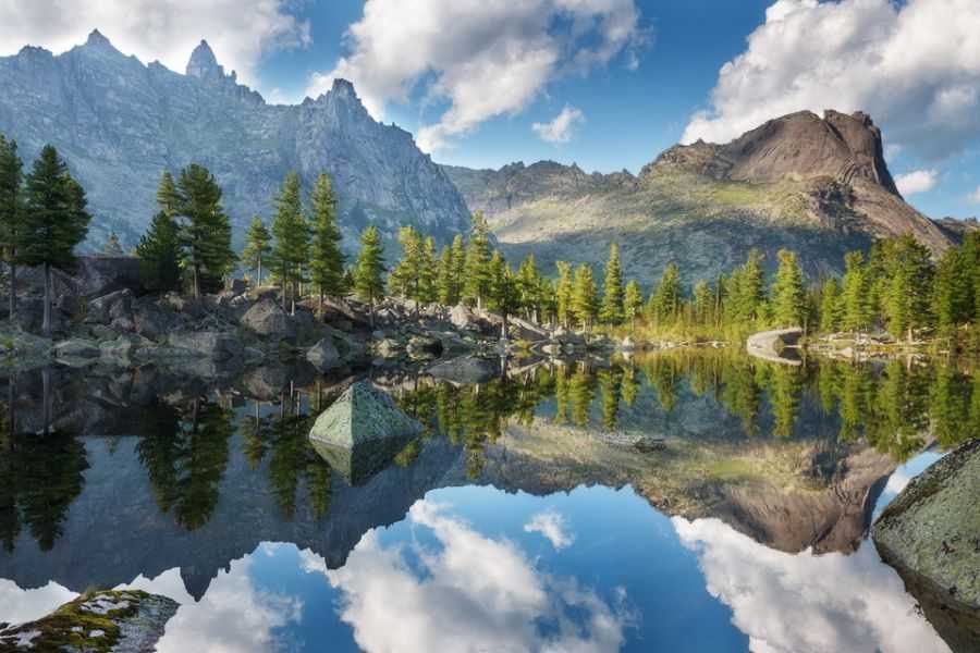 Есть красивая легенда: если камень покатится вниз и упадет в озеро Радужное, брызги от его падения разбудят Спящего Саяна.