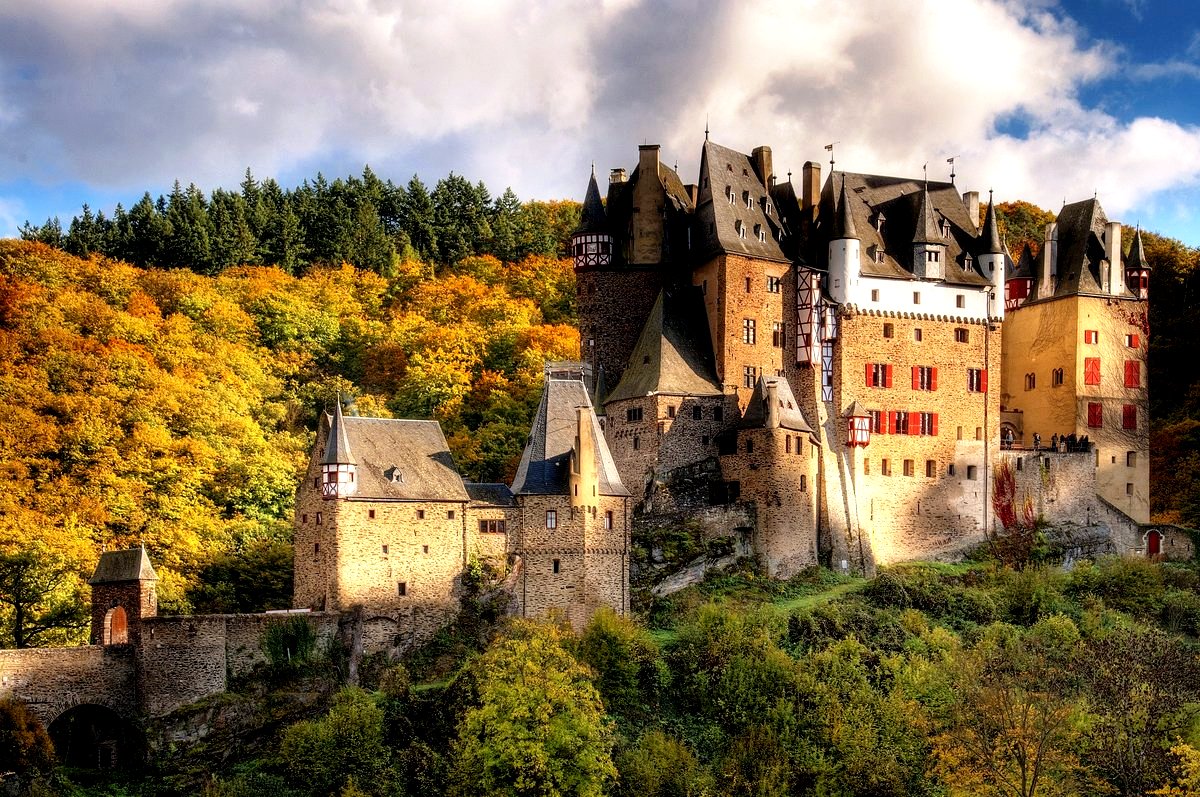 Замок Эльц был построен в 12 столетии на отвесной скале, которую почти вокруг огибает речушка Эльцбах, приток реки Мозель