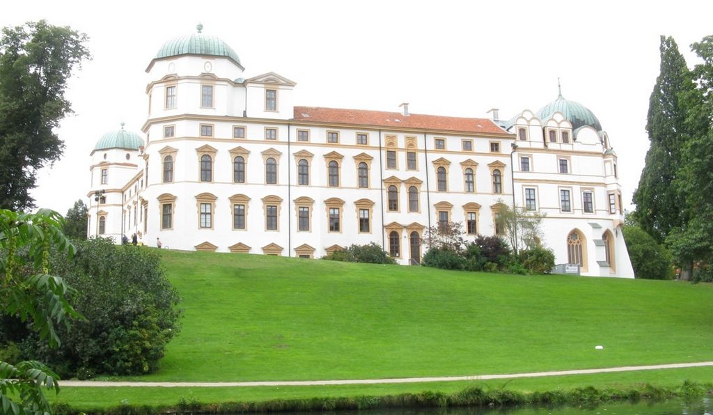 Последние работы по расширению и реставрации замка проводились известным архитектором 18 века Матиасом Пеппельманом — любимчиком короля Августа I. Благодаря его стараниям на берегу кристально чистого озера появился настоящий шедевр архитектурного искусства. Жемчужина Германии — прекрасный барочный дворец, выполненный в ярко-желтых «солнечных» тонах с крышей цвета гранита. Роскошная балюстрада ведет к пышной дворцовой террасе. Здесь по всему периметру расставлены скульптуры охотников, вылепленные из песчаника, огромные вазы с цветами и фигурки маленьких очаровательных ангелочков. Парадный вход увенчан большими оленьими рогами. Переступив порог замка, посетители оказываются в «охотничьем царстве». Интерьеры многочисленных залов поражают роскошью и пышностью. На стенах обои из кусков кожи, отделанные позолотой, тиснением, серебром и росписью. Перед взором туристов предстают увлекательные мифологические сюжеты, связанные с охотой. На стенах некоторых залов можно увидеть картины с изображением Богов охоты и сцен из их жизни. Украшением замка является дорогая антикварная мебель, изготовленная по особому заказу во Франции, Германии и Италии. А также изделия их китайского, майсенского, японского и германского фарфора. Гордость Морицбурга — удивительная «Комната перьев». Высокие потолки и стены выполнены в теплых пастельных тонах. Роскошные настенные ковры, напольные фарфоровые вазы, изящные статуэтки, в центре — большая деревянная кровать с балдахином. Интересно, что ковры и балдахин изготовлены из одного материала — птичьих перьев (павлинов, уток, фазанов). В каждом дворцовом зале есть хотя бы один атрибут, напоминающий об охоте — картина, оленьи рога, ковер, рисунки на обоях, вазы и.т.д. Морицбург утопает в зелени прекрасного садово-паркового ансамбля.