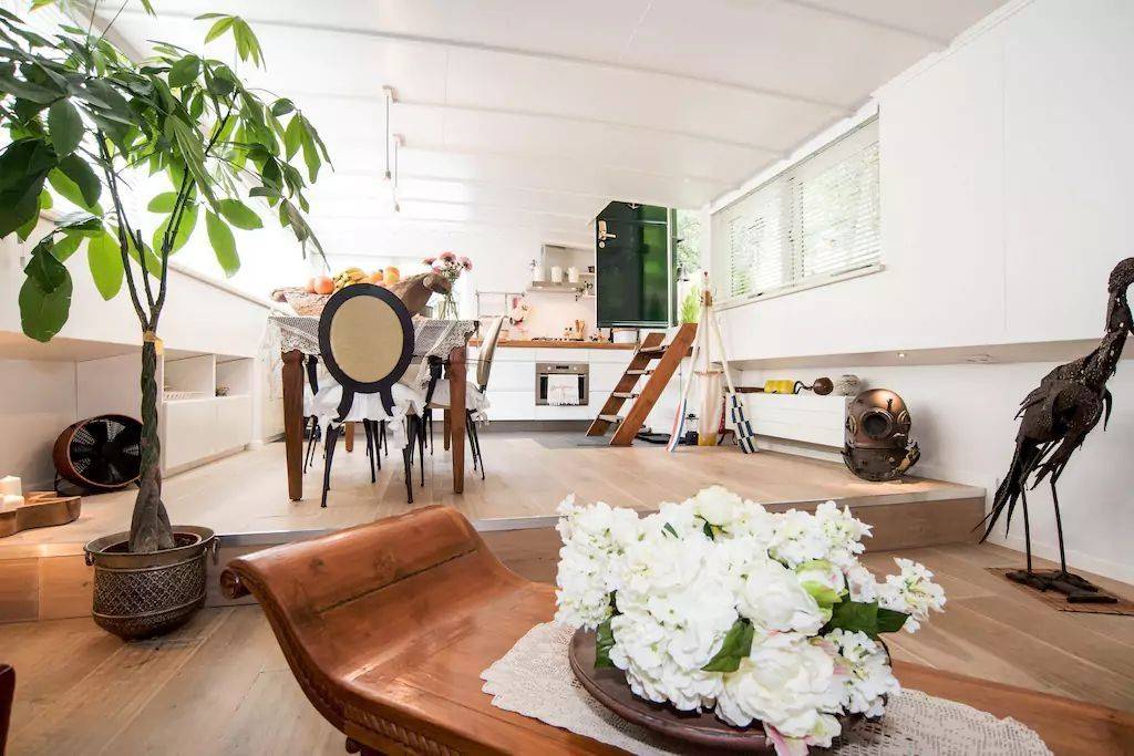 Garden houseboat — это светлое, стильное и наполненное зеленью судно, расположенное в центре города.