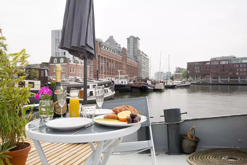 Снаружи — на верхней палубе можно насладиться прекрасным видом на город. Добрые хозяева предлагают в аренду велосипеды для прогулки по Амстердаму, помогают с поиском необычных мест, не указанных в путеводителях.