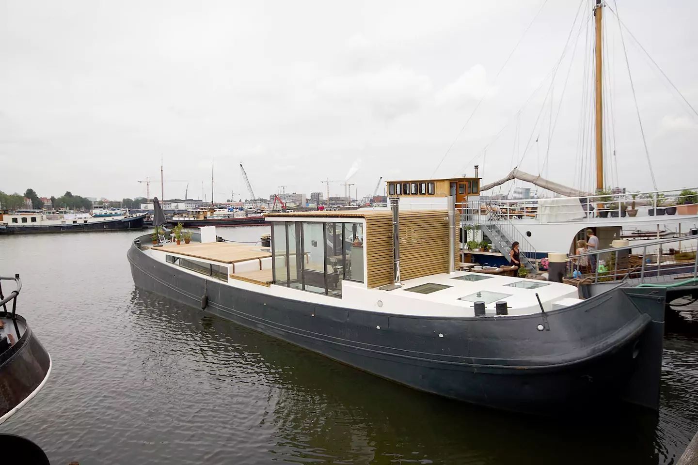 Этот плавучий дом считается одним из самых больших в своей категории. Его длина – 29 метров, ширина – 5 метров, глубина осадки – 1,4 метра, а общая площадь всех помещений и палуб – 475 квадратных метра. Далеко на каждый “земной” дом в Амстердаме может похвастаться таким простором.