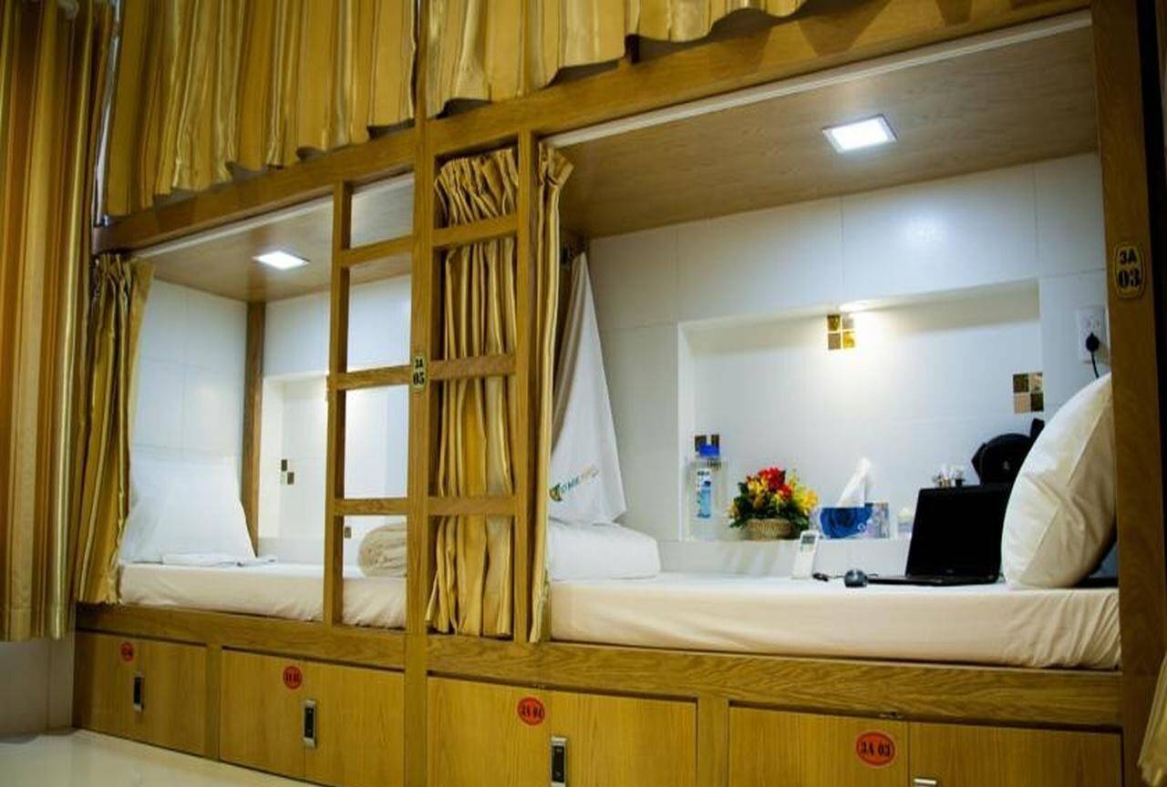 - Плюсы: своё личное пространство с общим интернетом, кроватью, тумбочкой и телевизором всего за $10-15 в сутки. Вещи хранятся в багажной камере, которой распоряжается хозяин. Возможно присутствие кондиционера и вентилятора (хотя не факт). Ежедневная уборка и замера простыней.