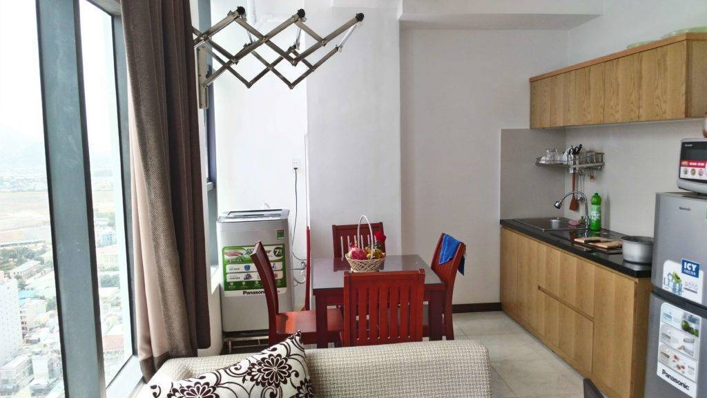 Апартаменты Нячанг. Вариант рангом повыше — апартаменты в Нячанге. Это квартира, чаще всего расположенная в многоэтажном доме. В апартаментах всегда оборудована кухня, сделан хороший ремонт. Количество комнат в апартаментах может быть разным. Популярны как апартаменты-студии, так и однокомнатные и двухкомнатные апартаменты с отдельной кухней.