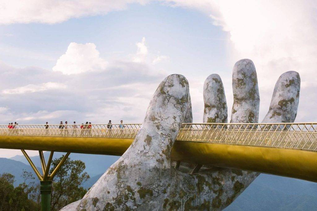 Рядом с курортным городом Дананг, в Ба На Хиллс летом 2018 года был построен огромный мост в виде золотой нити, доставаемой из земли гигантскими руками. На вид этому сооружению сотни, а то и тысячи лет. На самом деле оно создано всего несколько лет назад из стали и стекла.